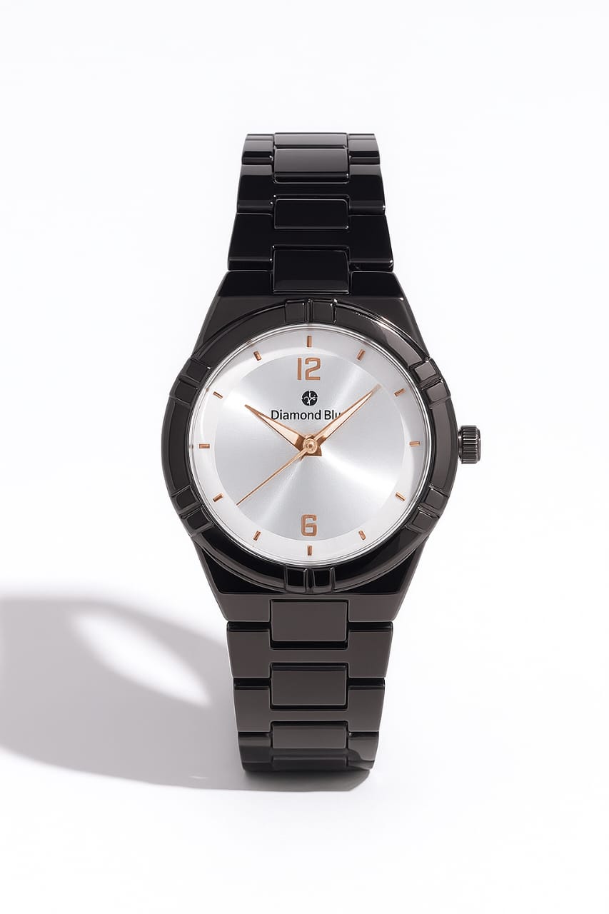 ساعة دايموند بلو الرجالية من متجر ماكس بتصميم أنيق يعكس القوة والبساطة في آنٍ واحد. لونها الأسود اللامع مع مينا فضية ولمسات ذهبية يمنحها طابعًا فاخرًا يناسب الرجل العصري في جميع أوقاته.